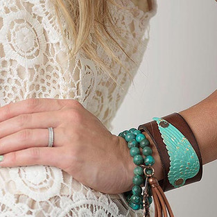 You know we already love to stack our bracelets, but adding layers of turquoise with leather and other elements is simply stunning.